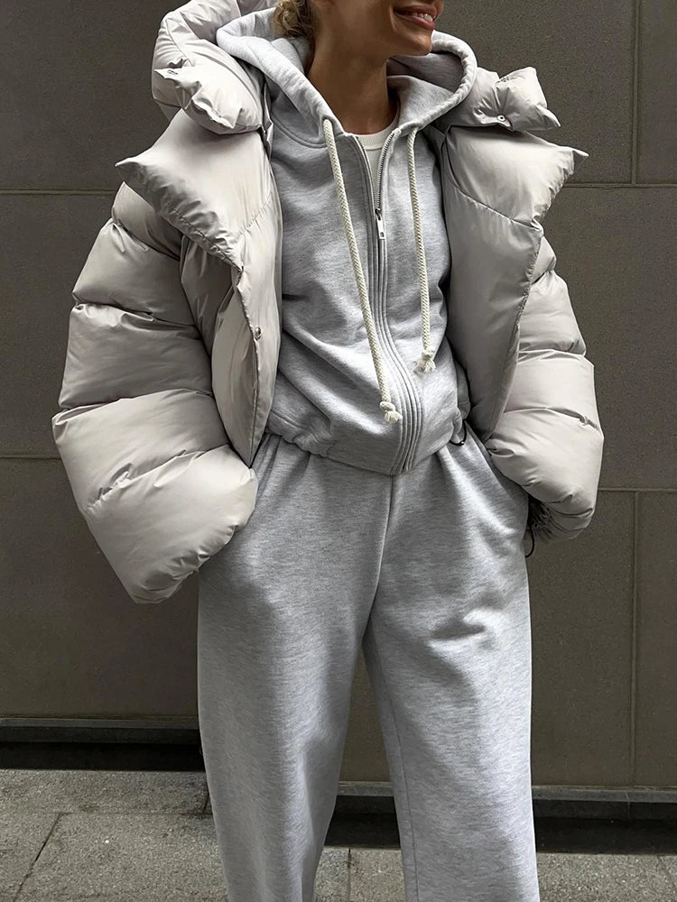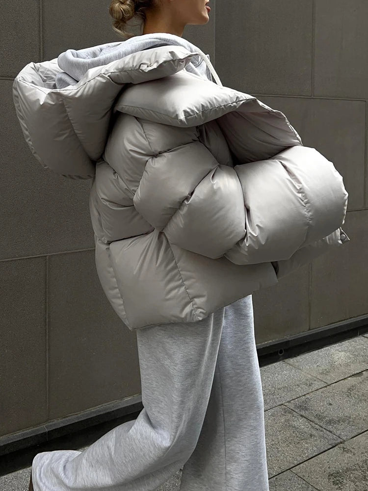 Womens Warm Hooded Bubble Puffer Jacket