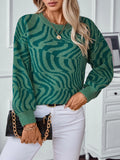 women's zebra print crew neck pullover sweater